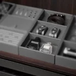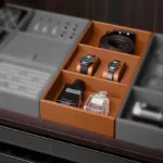 باکس چرمی ترکیبی جای ساعت و کمربند فرنچ استایل فانتونی J919 و J939 و J959 با رنگ قرمز، نارنجی و طوسی، مناسب جای ساعت و کمربند و عطر و ادکلن