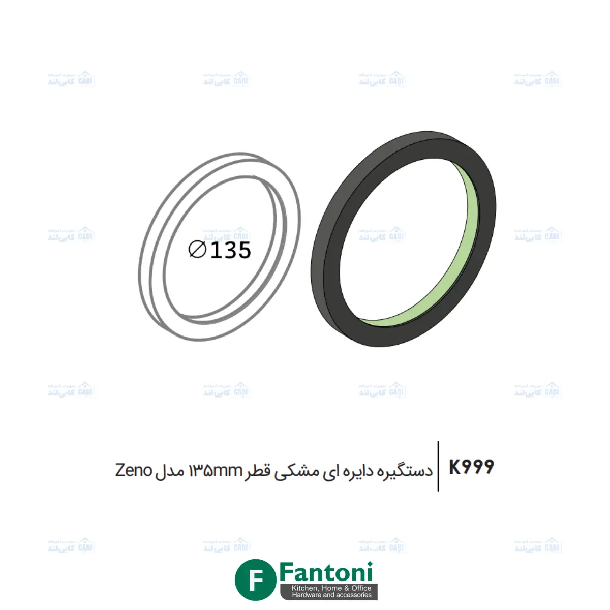 دستگیره دایره ای مشکی قطر 135mm مدل Zeno فانتونی K999