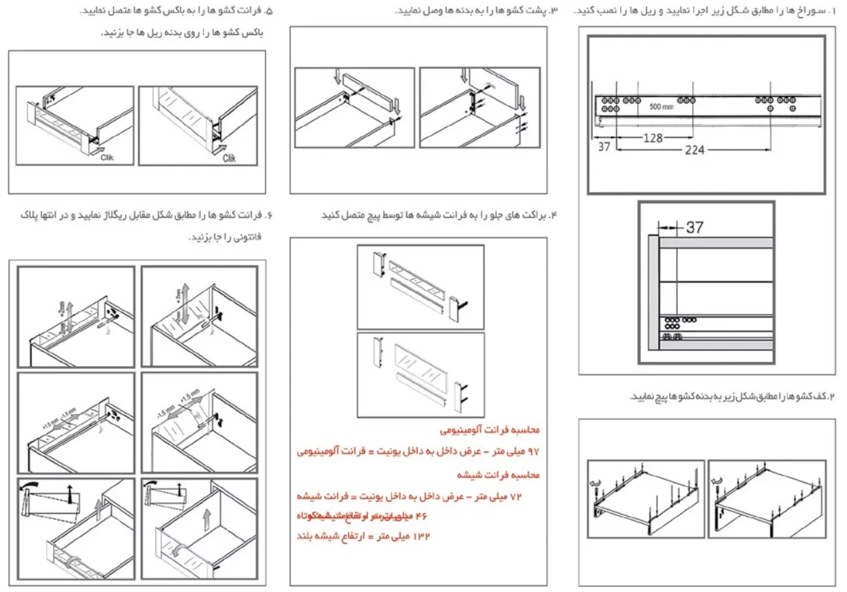 متعلقات : 4 کشو اینر 193mm اسلیم با فرانت آلومینیوم + 1 کشو اینر 106mm اسلیم شیشه با فرانت آلومینیوم