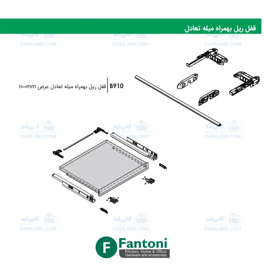 قفل ریل به همراه میله تعادل عرض 1100mm فانتونی B910 با ۵ سال گارانتی بی قید و شرط فانتونی
