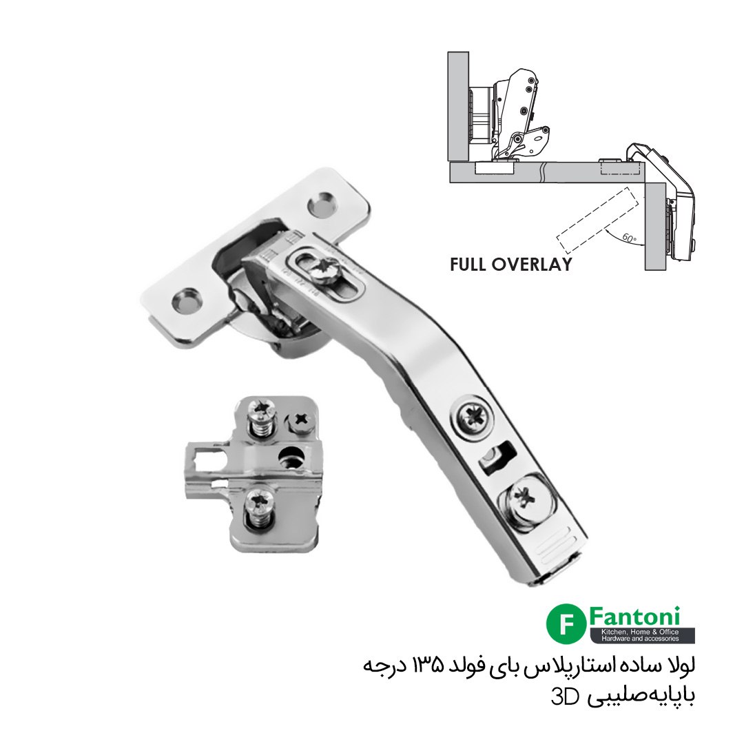 لولا ساده استار پلاس بای فولد 135درجه کلیپسی با پایه صلیبی 3D – فانتونی A033، بدون آرامبند، لولا ساده لولا گازور کلیپسی با قابلیت ریگلاژ