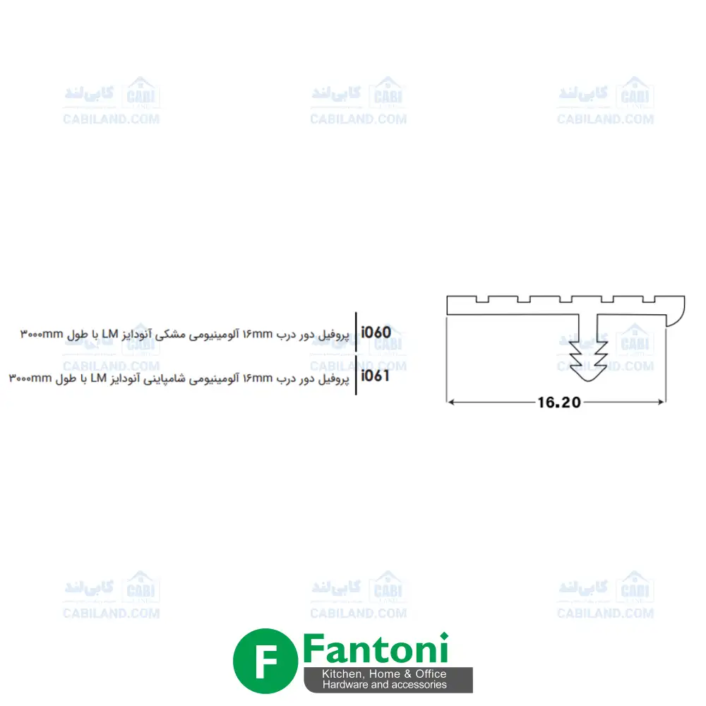 پروفیل دور درب 16mm آلومینیومی آنودایز LM با طول 3000mm فانتونی i060 و i061 از سری محصولات پروفیل لبه درب آنودایز فانتونی با ۵ سال گارانتی بی قید و شرط